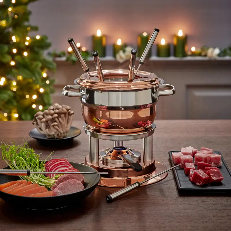Service à fondue cuivre 3-en-1 avec insert céramique