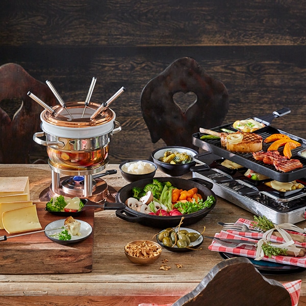 La raclette est aussi un plat de la cuisine alpine suisse. Son nom remonte à l’époque où les bergers se rassemblaient autour du feu et raclaient le fromage fondu directement sur la meule. Pour la raclette, seul du fromage avec une teneur en matière grasse d’au moins 45 % doit être utilisé. Outre le traditionnel fromage à raclette, les variétés appropriées comprennent le reblochon mentionné ci-dessus, mais aussi les fromages de montagne à pâte dure (type Bergkäse), le tilsit ou le gorgonzolal