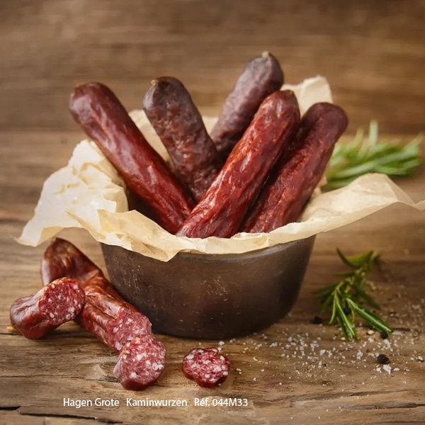 Les Kaminwurzen, qui nous viennent du Tyrol du Sud, sont appréciées bien au-delà de cette région. Ce sont des saucisses crues, séchées à l’air et fumées à froid, à base de graisse de bœuf et de porc ou simplement de porc. Des variantes à base d’autres types de viande, comme la chèvre ou le cerf, sont également disponibles. Son nom remonte à la méthode originale de fumage : autrefois, de nombreuses maisons avaient un fumoir dans la cheminée sur le toit, dans lequel les habitants fumaient leurs saucisses. Nos Kaminwurzen très aromatiques sont fabriqués dans une boucherie fondée en 1923 selon une ancienne recette familiale.
