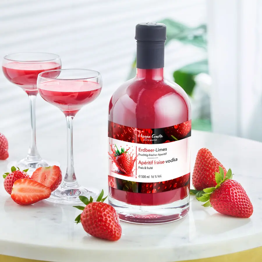 La boisson toujours tendance outre-Rhin. À partir de fraises gorgées de soleil (teneur en fruits 33 %) et de vodka de qualité supérieure, nous fabriquons pour vous dans notre atelier d’épicerie fine cette liqueur hautement aromatique et délicieusement fruitée.