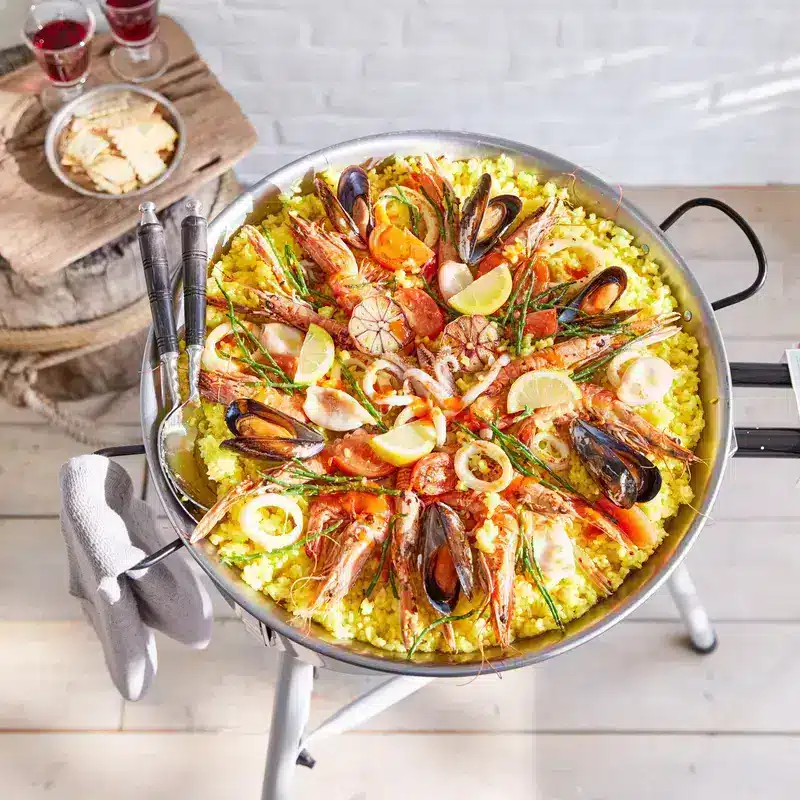 La paella est synonyme du célèbre plat de riz espagnol ainsi que du nom de la poêle dans laquelle il est préparé. Une fois les ingrédients préparés, il vous faudra à peine 20 minutes dans cette poêle pour que votre paella espagnole originale soit prête.