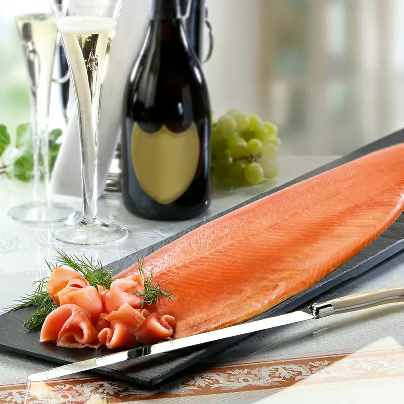 In der abgelegenen Wildnis Alaskas hat der Mensch den Wildlachs (im Gegensatz zu Europa) noch nicht vertrieben. Hier gibt es weder Industrie noch Luft- und Wasserverschmutzung. Deshalb hat der echte Wildlachs hier überlebt. Heute wird er auch in dieser abgelegenen Gegend durch strenge Fangbegrenzungen bewusst geschützt. Lassen Sie sich nichts vormachen. Sogenannte « Wildwasserlachse », oder welche klugen Fantasienamen seine gezüchteten Brüder auch tragen, haben mit diesem wild lebenden Fisch rein gar nichts gemeinsam. Echter Wildlachs hat kein Gramm Fett zu viel, und die natürliche zartrosa Farbe entsteht durch seine typische Nahrung (Krebse, Garnelen, Muscheln). Dieser Fisch ist ein kulinarisches Ereignis. In schonender Kalträucherung wird er in traditionellen Öfen im Rauch harmonisch abgestimmter Holzarten haltbar gemacht. Sein fettarmes Fleisch mit mildem, delikatem Raucharoma zergeht fast auf der Zunge. Lassen Sie sich diesen seltenen Genuss nicht entgehen.