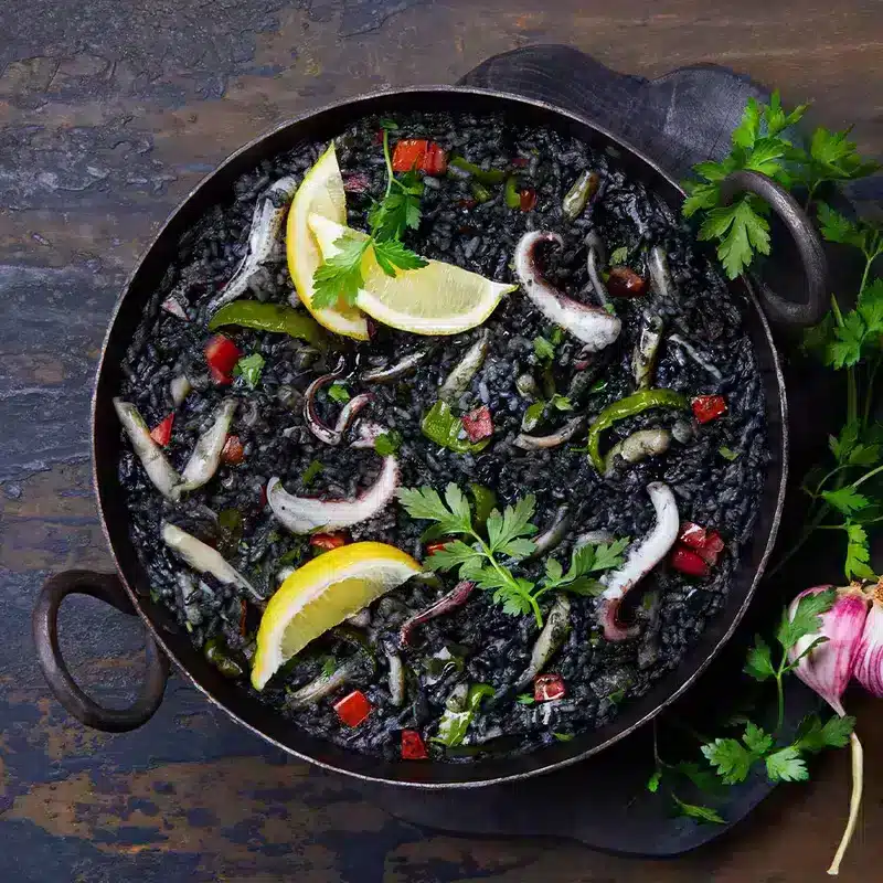 Die Grundlage für eine original spanische Paella ist die Paellapfanne aus Eisen, die hoch erhitzbar ist und die gespeicherte Hitze gleichmäßig abgibt. Dazu 250 ml allerbestes natives Olivenöl, unser Paella-Gewürz mit Safran und acht weiteren Gewürzen wie Kurkuma, Tymian und Rosmarin. Unverzichtbar für jedes Paella-Set ist der typische runde Bomba-Reis und edles Pimenton de la Vera, mildes geräuchertes Paprika. Zusammen mit dem spanischen Original-Rezept von Hagen Grote gelingt die perfekte Paella. Nur die gewünschte Fleisch-Einlage und etwas Zitronensaft fehlen noch. Rein natürliche Zutaten, frei von jeglichen Geschmacksverstärkern oder Zusatzstoffen. Pfanne mit Griff Ø 45cm, ohne Griff (Innendurchmesser Ø 35 cm), Bodendurchmesser Ø 28 cm.