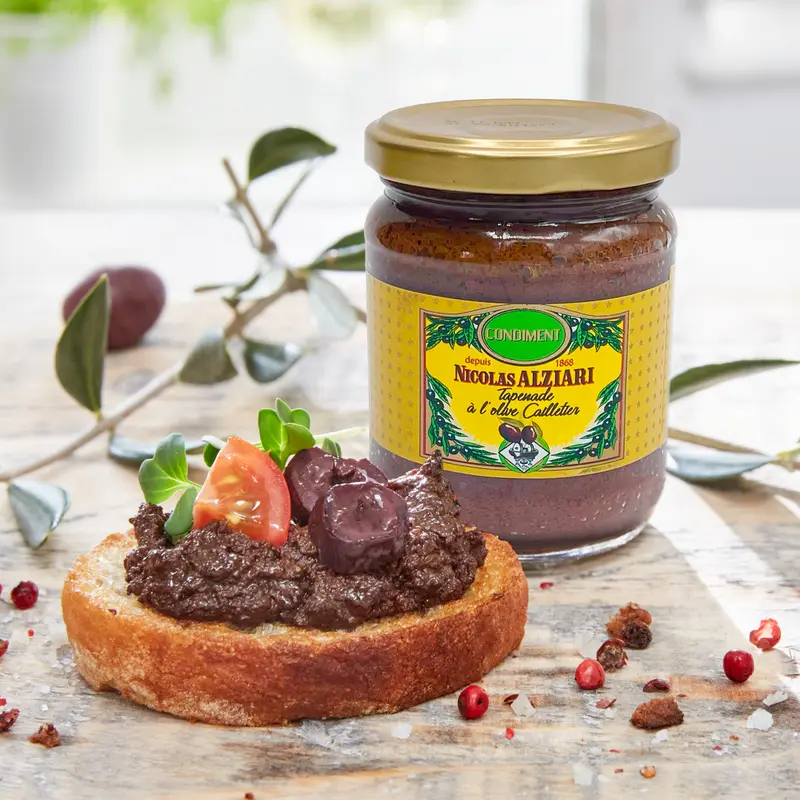 Cette pâte fine faite à partir des petites olives noires de Nice, très aromatiques est une spécialité typique de la Provence. Elle est agrémentée de câpres, d’anchois, d’herbes et d’huile d’olive vierge.