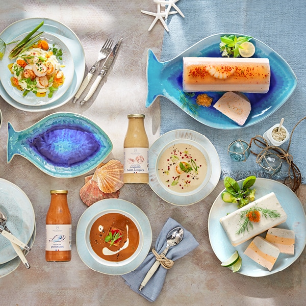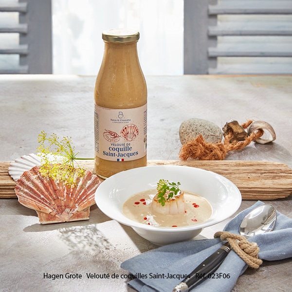 La Bretagne est également réputée pour ses soupes exquises à base de poissons et de fruits de mer. Un délice pour les gourmets sont nos soupes veloutées crémeuses, préparées de manière traditionnelle à partir de poissons fins fraîchement pêchés et qui doivent être brièvement réchauffées. Dégustez un velouté de coquilles Saint-Jacques et de langoustines et la soupe de poissons classique bretonne, enrichie de vin blanc et de safran, douce et finement assaisonnée.