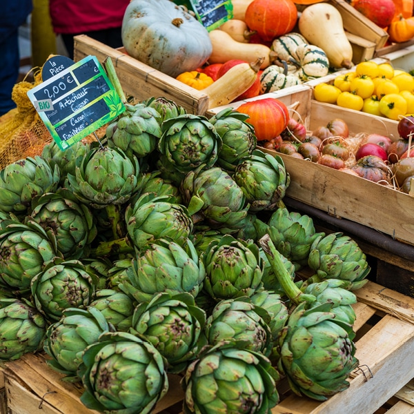 La Bretagne est également connue pour ses artichauts, en particulier trois variétés sont économiquement importantes : la variété Camus, le Castel rond et charnu et le plus petit artichaut violet. Côté fruits, la Bretagne offre également une grande diversité. Pommes, poires, coings, baies et cerises sont traditionnellement cultivées, pêches et même kiwis y prospèrent. Les variétés de pommes traditionnelles, comme la « Pomme de Rennes » et la « Pomme de Reinette », sont souvent transformées en cidre. Une spécialité particulière est la fraise « Gariguette » de Plougastel, disponible de mai à août, reconnue pour sa saveur intense et sucrée, particulièrement appréciée dans la restauration haut-de-gamme.