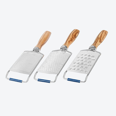 Image du produit pour 'Râpe à fromage : râpes spéciales ultra-tranchantes coupées au laser avec poignées en olivier noble'