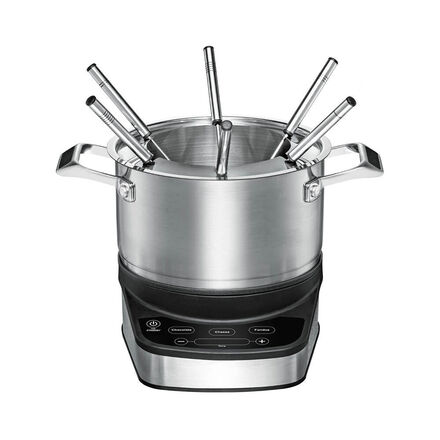 La fondue chinoise est aussi nommée fondue asiatique ou fondue au bouillon. Tous les ingrédients sont cuits dans un bouillon plutôt que dans de l'huile, comme c'est le cas pour la fondue bourguignonne. L'appareil dispose de 2 niveaux de chaleur pour chauffer la fondue ou garder le contenu au chaud. La petite plaque gril amovible peut être allumée séparément.