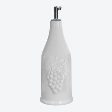 Bouteille vinaigre balsamique 250 ml - Porcelaine, Ø 5,5 cm, 21 cm, bec verseur, opaque et hermétique, lave-vaisselle, pour vinaigre & huile, relief décoratif