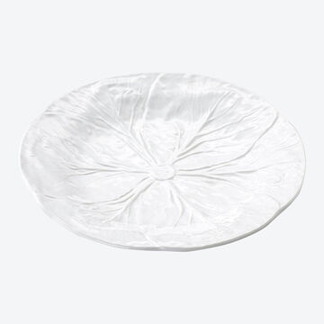 Les feuilles de choux aux nervures marquées ont inspiré, il y a déjà plus de 130 ans, Rafael Bordalo Pinheiro pour les ébauches de sa céramique ouvragée. Sa manufacture fondée à l'époque à Caldas da Rainha au Portugal produit jusqu'à aujourd'hui de façon traditionnelle. Cette vaisselle décorative orne les tables de la jet-set internationale, tout comme celle de la noblesse. Coulé en moule et émaillé à la main, chaque élément, très ornementé, devient une pièce unique. Disponible en vert classique, ou blanc sobre, utilisée seule ou en mix de couleurs, la vaisselle apporte sur la table sa beauté méditerranéenne. Fabriquée artisanalement au Portugal, va au lave-vaisselle et au micro-ondes.