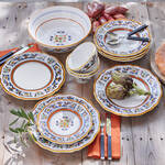 Le village de Deruta est mondialement connu pour ses céramiques uniques. Le style de décoration connu sous le nom de « Ricco Deruta », originaire d'Orient, était présent dès le Moyen-Âge en Italie. Les décors aux formes parfaites et à l'énorme luminosité dans les couleurs typiques bleu cobalt et jaune chrome sont encore peints à la main aujourd'hui. A l'instar de ce style, les assiettes à dessert Nova Deruta sont encore confectionnées pour une grande part artisanalement. La production est très complexe. Chaque assiette est un petit chef-d'oeuvre et confère à une jolie table dressée une atmosphère élégante et joyeuse.