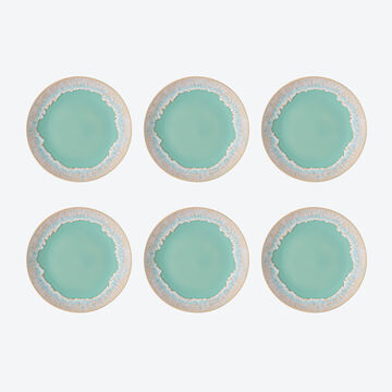 Assiettes à dessert en grès, lot de 6, Ø 21 cm - Fabrication artisanale au Portugal, tons bleus méditerranéens, émail à effet, lavables en machine