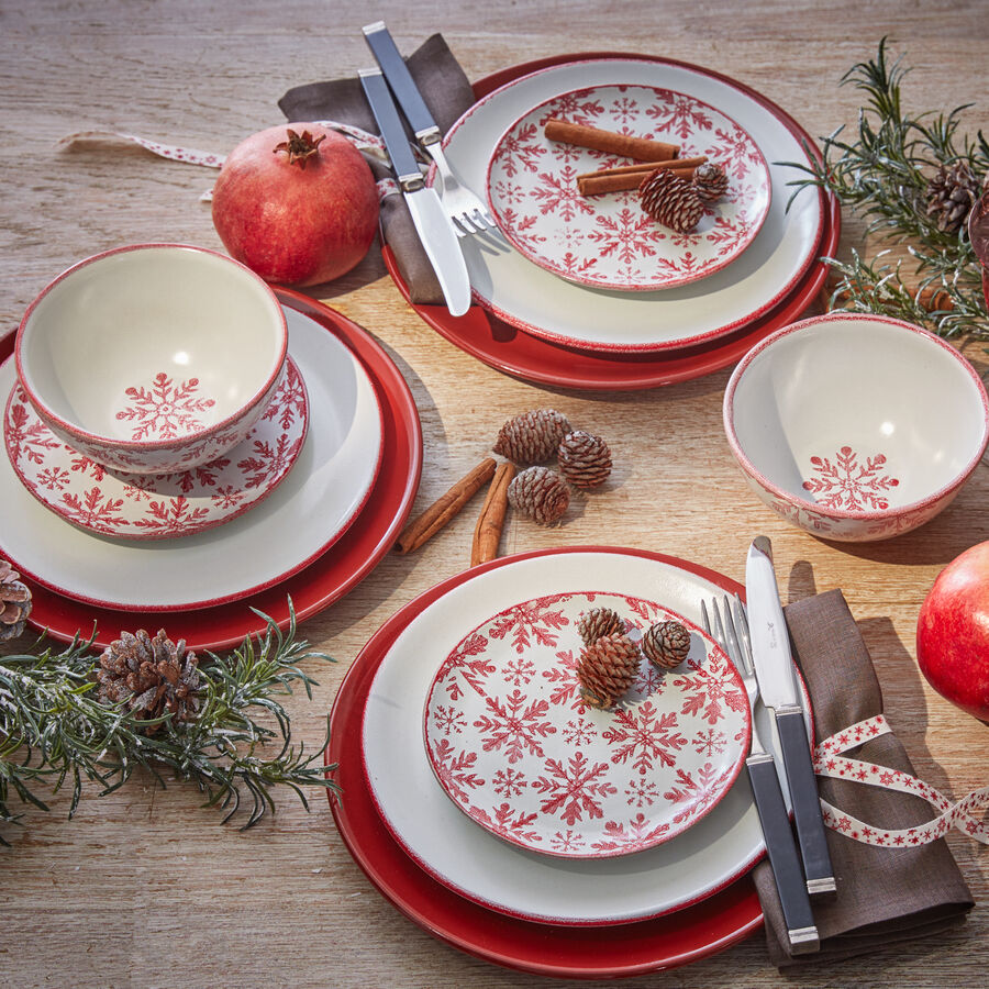 Nous faisons fabriquer cette vaisselle décorative selon nos critères élevés de qualité dans une manufacture de céramique portugaise réputée. Des cristaux de glace stylisés ornent les assiettes à dessert et les bols, tandis que les assiettes plates et à salade sont unies, en rouge ou blanc. Le mix & match vous permettra de créer de nouvelles combinaisons pour une jolie table. Céramique double cuisson, résistante aux chocs et aux rayures, va au lave-vaisselle.
