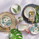 • Pièces de vaisselle à combiner avec les décors fleurs et feuilles des Caraïbes