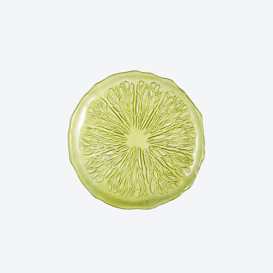 Inspirées des oranges, des kiwis et des fraises, ces assiettes en verre coloré scintillent. Leurs reflets lumineux résultent de leur motif en filigrane évoquant les agrumes. Dans les jolies assiettes, vos salades, plats raffinés et salades de fruits sont mis en valeur. Une fois le motif pressé dans le verre, les couleurs sont appliquées à la main avec une éponge et un pinceau. Elles sont ainsi particulièrement intenses, avec des nuances plus claires ou plus foncées selon l'incidence de la lumière.