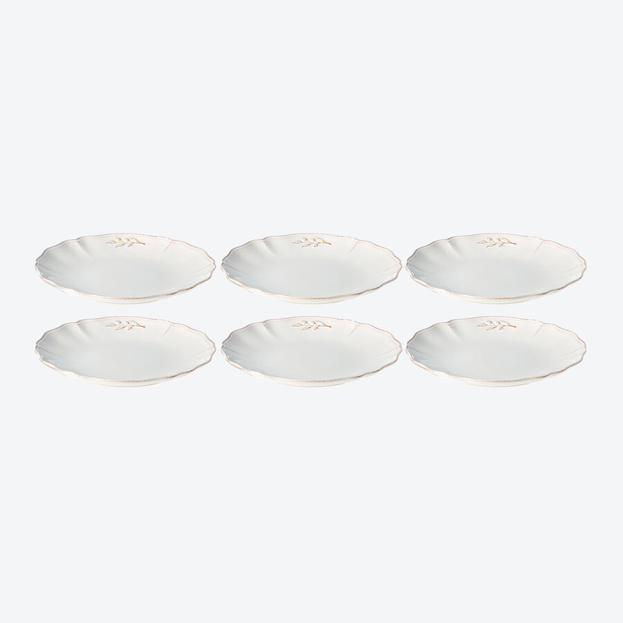 L'olivier a toujours été un symbole particulier de l'univers culinaire de la région méditerranéenne. Ses feuilles et ses fruits ornent le bord, délicatement travaillé en relief, de cette vaisselle très classe. Avec une élégance charmante, elle transmet un style de vie de haut niveau. Les bords de la vaisselle ont été traités au cours d'un travail manuel sophistiqué pour obtenir le bel effet patiné. La cuisson à presque 1200 °C rend la vaisselle en faïence haut de gamme, recouverte d'un verni pour contact alimentaire, résistante à une température de -20 °C à + 250 °C, adaptée au micro-ondes et au lave-vaisselle.
