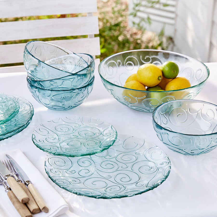 C'est dans le sud-est de l'Espagne, dans la commune de L'Olleria, célèbre pour sa production de verre, qu'est créée cette impressionnante vaisselle. Elle est fabriquée à partir de verre recyclé, mis en forme après avoir été fondu à 1460 °C, ce qui le rend extrêmement robuste. Le motif à spirales lui donne son aspect dynamique et frais qui s'intègrera parfaitement dans tout environnement et tout style. La taille des assiettes et des bols peut varier très légèrement, faisant de chaque pièce une pièce unique.