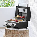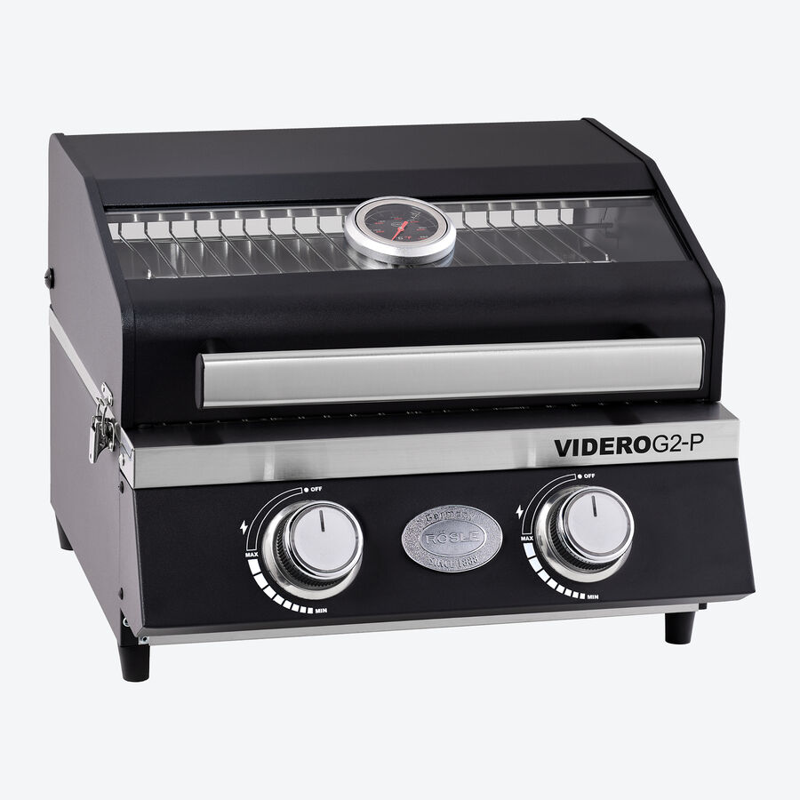 Corps en acier revêtu par poudre noir avec éléments en acier inoxydable, 45 x 45 x 34,7 cm (l/p/h), poids 12,5 kg, brûleurs haute performance en acier inoxydable de 2,2 kW. Grille de cuisson en acier inoxydable, surface de cuisson en deux parties 39 x 32,5 cm (l/p), grille de maintien au chaud en acier inoxydable 39 x 13 cm (l/p), pieds caoutchoutés antidérapants (résistants à la chaleur) pour une bonne stabilité. Bac de récupération des graisses en acier inoxydable, poignée de transport en acier inoxydable et crochets de fermeture latéraux pour un transport sûr. Support assorti, acier revêtu par poudre, sac de transport, polyester résistant aux intempéries 49 x 47 x 37 cm (l/p/h), avec larges poignées et compartiment latéral pour les accessoires. Autres accessoires disponibles séparément.