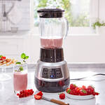 Avec 4 programmes automatiques, vous réussissez rapidement et facilement les smoothies, les boissons glacées, les soupes et la glace pilée. Vous broyez tout aussi simplement les aliments durs comme les glaçons, les fruits surgelés et les noix sur 3 vitesses jusqu'à 22 000 tours par minute, réglables manuellement. Le fractionnement optimal des structures cellulaires fragiles des fruits et légumes permet également une préparation riche en nutriments. Le bloc couteau à 6 lames en acier inoxydable revêtu de titane, amovible pour un nettoyage facile, exécute toutes les opérations.