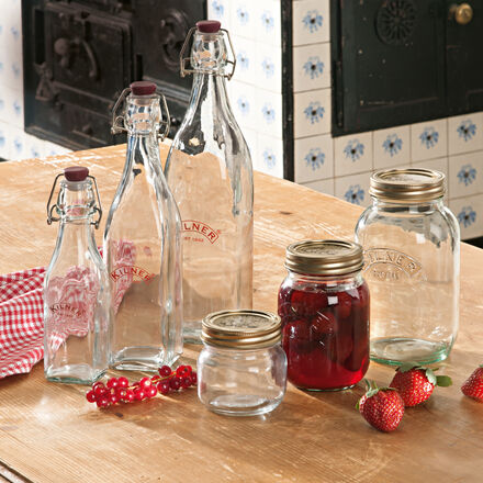 John Kilner & Co inventa déjà en 1842 au Yorkshire, Angleterre, ces parfaits bocaux à conserves. Sur un test permanent de 150 ans, ils ont prouvé leur aptitude. Une grande qualité de verre et la précision des ouvertures sont décisives pour le succès de la mise sous vide. Les bocaux sont ornés d'une jolie impression en relief du logo. Stériliser avant l'utilisation dans l'eau bouillante contre les bactéries et les spores de moisissure. Les remplir encore très chauds et les laisser refroidir pendant 24 heures. Des joints en caoutchouc sont disponibles séparément pour toutes les tailles