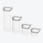 Taille S : 11 x 11 x 11 cm (l/p/h), 800 ml (pour env. 500 g de sucre, 500 g de riz ou 250 g de café)