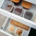 Conservez les aliments secs tels que le riz, les pâtes et les céréales dans ces boîtes à provisions de manière absolument hygiénique, sûre, étanche à l'air et préservant les arômes. Grâce au couvercle en verre avec anneau en silicone amovible et sans BPA, vous gardez toujours une vue d'ensemble parfaite sur vos réserves. Leur base carrée permet de gagner de la place dans les tiroirs ou le réfrigérateur.