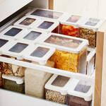 Grâce à ce récipient transparent, vous avez désormais, à tout moment, une vue d'ensemble de toutes vos réserves. Des joints spéciaux adaptés à l'alimentaire dans les couvercles également transparents, étanches à l'air et à l'eau, préservent la fraîcheur des aliments. Empilables, toutes les dimensions sont adaptées aux emballages courants ainsi qu'aux dimensions des armoires de cuisine, des tiroirs et des réfrigérateurs.
