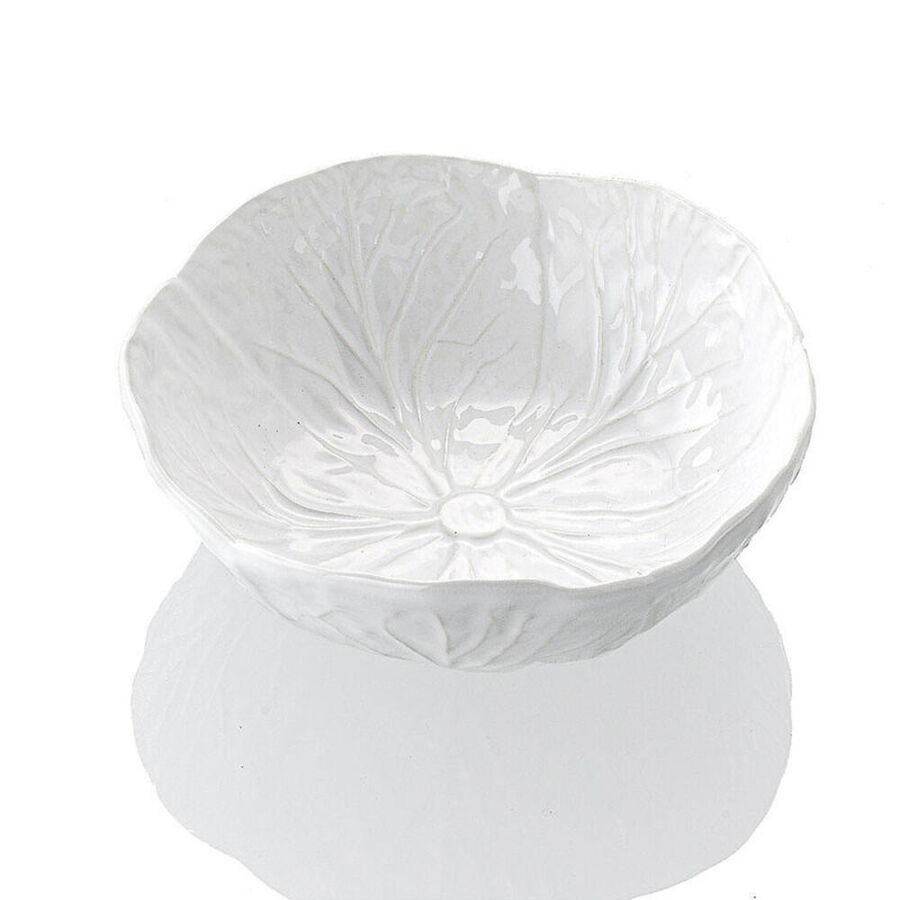 Les feuilles de choux aux nervures marquées ont inspiré, il y a déjà plus de 130 ans, Rafael Bordalo Pinheiro pour les ébauches de sa céramique ouvragée. Sa manufacture fondée à l'époque à Caldas da Rainha au Portugal produit jusqu'à aujourd'hui de façon traditionnelle. Cette vaisselle décorative orne les tables de la jet-set internationale, tout comme celle de la noblesse. Coulé en moule et émaillé à la main, chaque élément, très ornementé, devient une pièce unique. Disponible en vert classique, ou blanc sobre, utilisée seule ou en mix de couleurs, la vaisselle apporte sur la table sa beauté méditerranéenne. Fabriquée artisanalement au Portugal, va au lave-vaisselle et au micro-ondes.