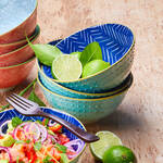 Les bowls sont la nouvelle tendance culinaire. Mais en Amérique latine, le ceviche, ce célèbre plat de poisson, originaire du Pérou, est servi dans un bol depuis des siècles. Ce plat est composé de poisson cru coupé en petits morceaux (la meilleure qualité de sushi), de viande blanche, de thon ou de saumon. Les aliments marinent ensuite dans un bouillon de jus de citron vert, de piment, de sel, d'oignons rouges et d'herbes. Par l'acidité du jus de citron vert, les protéines sont dénaturées et le poisson cuit mais sans être chauffé. Servez ce délicieux plat dans ces magnifiques bols, dont le design s'inspire des motifs et des couleurs typiques du Pérou. Leur taille est également parfaite pour les soupes, les pâtes, les salades de fruits ou de crudités et tous les plats de type bowl. Recettes sur www.hagengrote.fr.