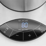 Vous réglez la température au degré près pour de l'eau chaude à bouillante et vous la lisez sur l'affichage digital de la bouilloire. Pratique pour la préparation des plats pour bébés ou les sortes de thé spéciales qui ne développent leur plein arôme qu'à la température d'infusion exacte. L'indication du niveau d'eau et la possibilité de régler la température à 1 °c près entre 35 et 45 °C et à 5 °C près à partir de 45 °C économise du temps et de l'énergie. Grâce à la fonction de maintien au chaud, la température est conservée pendant deux heures. Ecran tactile facile d'utilisation, signal sonore annonce quand la température choisie est atteinte. Maniement agréable grâce à la rotation de 360 °C et l'ouverture du couvercle par simple pression sur bouton. Le corps en acier inoxydable de grande qualité enrichira votre cuisine par son design moderne. Acier inoxydable, plastique et verre, 22,5 x 16,5 x 24,5 cm de hauteur, contenance 1,7 l, poids 1,45 kg, 1.850 à 2.200W/230V, cordon de raccordement 70 cm avec enroulement. Sécurité contrôlée.