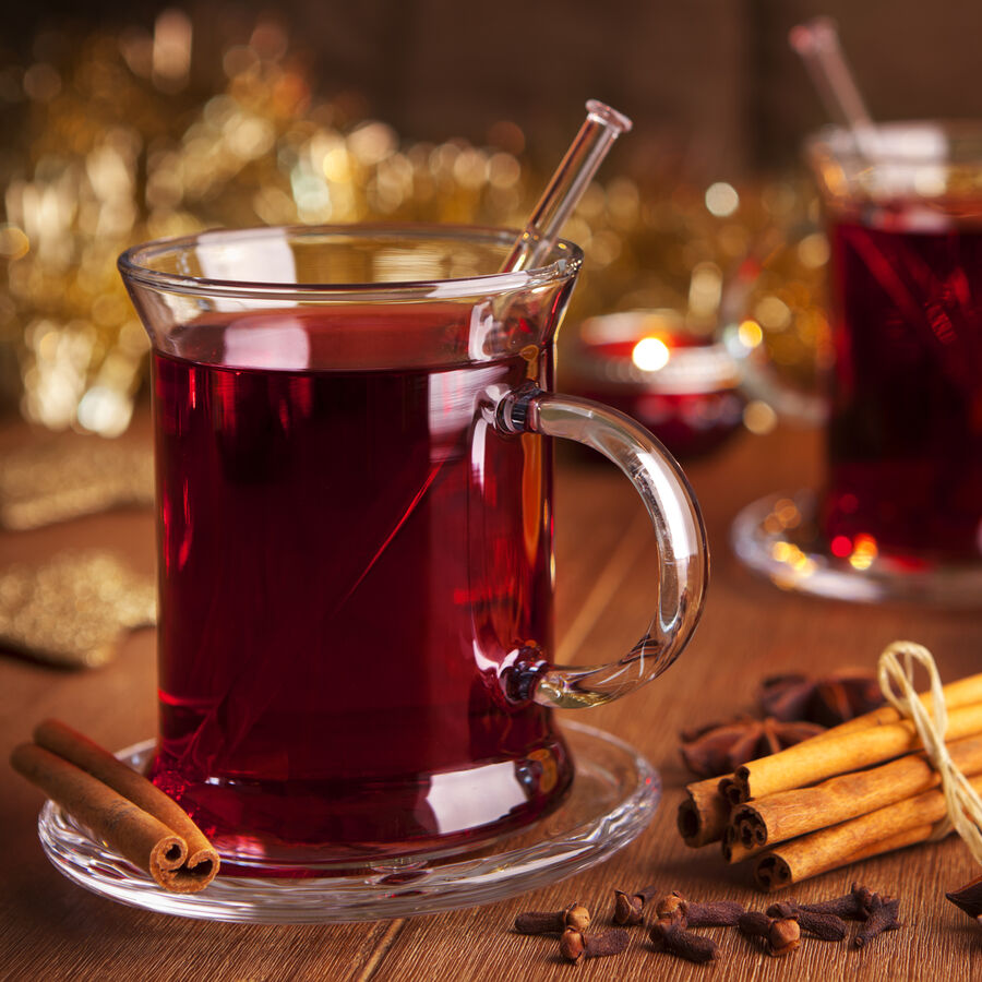 2 Ensuite, passer le vin à travers un tamis fin dans une autre casserole. Mettre quelques morceaux d'écorces d'agrumes, d'environ 3 cm de long, comme garniture dans des verres résistants à la chaleur. Faire chauffer le jus des agrumes avec le rhum et le vin et le verser dans les verres.