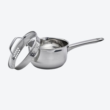 • Image du produit pour 'Casserole saucière avec couvercle égouttoir innovant, casserole, insert passoire'