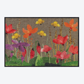 Tapis de protection bien épais à poils longs aux motifs de cyclamens et au dos en caoutchouc antidérapant, sans PVC. Il atténue efficacement la charge sur les articulations, le dos, les pieds et les jambes. Garde les sols propres dans les endroits de la cuisine très sollicités comme devant la cuisinière, fixe la poussière, le pollen et les poils d'animaux. Robuste, grand teint, même à l'extérieur, il fera usage de nombreuses années.