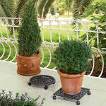 Votre chariot à roulettes décoratif en fonte rend vos lourds pots à fleurs mobiles. Ces chariots à plantes en fonte de style sont fabriqués selon une méthode artisanale séculaire. Coulés à la main, ils attirent l'attention par leur charme antique et rustique. Ils pourraient provenir directement d'un petit magasin d'antiquités de la Portobello Road à Londres. Vous déplacez sans peine de l'intérieur vers l'extérieur les plantes en bac pesant jusqu'à 90 kg sur ces roues en plastique stables et manoeuvrables. Ne sont pas inoxydables. Même lors du nettoyage, les plantes sont rapidement mises de côté sans abîmer vos précieux sols. 4,5 cm haut, pèse 2,2 kg.
