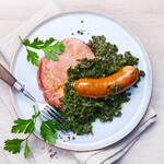 • Image du produit pour 'Chou vert à la saucisse - plat cuisiné classique de la cuisine allemande, à réchauffer en quelques minutes, simple et rapide'