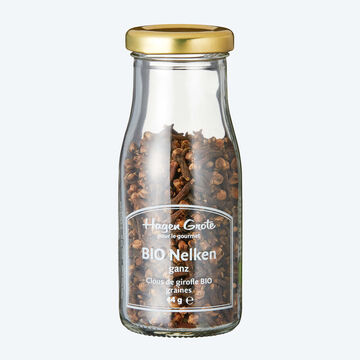 Boutons floraux récoltés à la main du giroflier tropical. Épicent les soupes, les marinades, la viande et les plats de gibier. Dosés prudemment, ils conviennent parfaitement aux compotes de poires, aux figues, aux gâteaux, punschs et vins chauds.