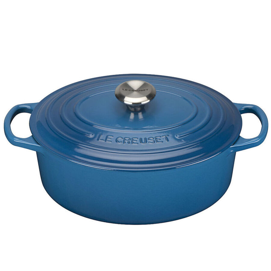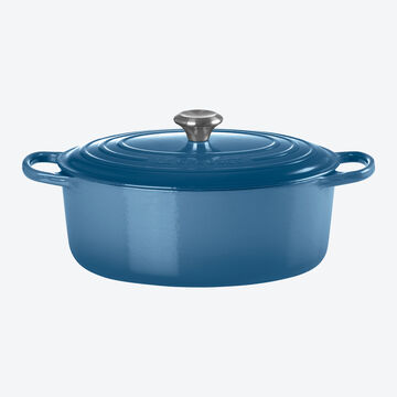 Le Creuset Cocotte ovale - Bleu, 4,2 l, 31 x 17 cm, émaillée, tous feux dont induction, four jusqu'à 260?°C, passe au lave-vaisselle, avec couvercle