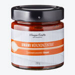 À la base de ce condiment concentré unique sont les saveurs originales des légumes déshydratés, auxquels nous ajoutons, une fois broyés fins, du liquide, dans notre petite manufacture d'épicerie fine. Au cours de nombreuses heures de réduction douce, les arômes végétaux extrêmement savoureux, au pouvoir assaisonnant intense se révèlent. Contrairement aux produits industriels, dans ce concentré, les habituels exhausteurs de goût, colorants et conservateurs ou glutamates/extraits de levure sont absolument tabous. Une à deux cuillères à café de cette pâte concentrée donnent aux plats une saveur merveilleuse. Production artisanale, ingrédients entièrement naturels.