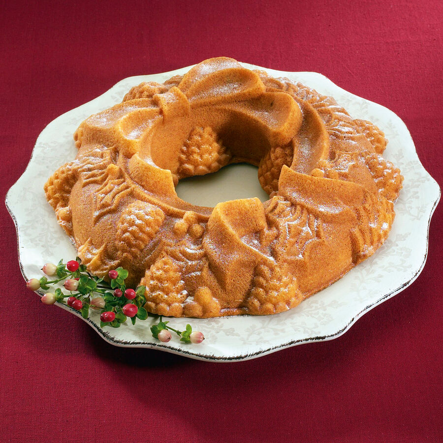 5 Alors que le gâteau est encore dans le moule, le percer de quelques trous avec un cure-dent ou une brochette. Répartir la moitié du sirop sur le gâteau. Démouler le gâteau sur un plat de service et l'arroser avec le sirop restant.