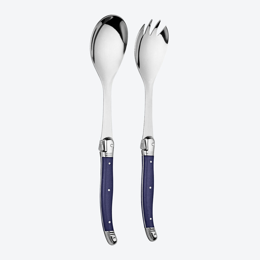 Laguiole Couverts à salade - Noir, inox 18/10, 25 cm, manches rivetés traditionnels, passe au lave-vaisselle, fait main à Thiers, coffret bois inclus