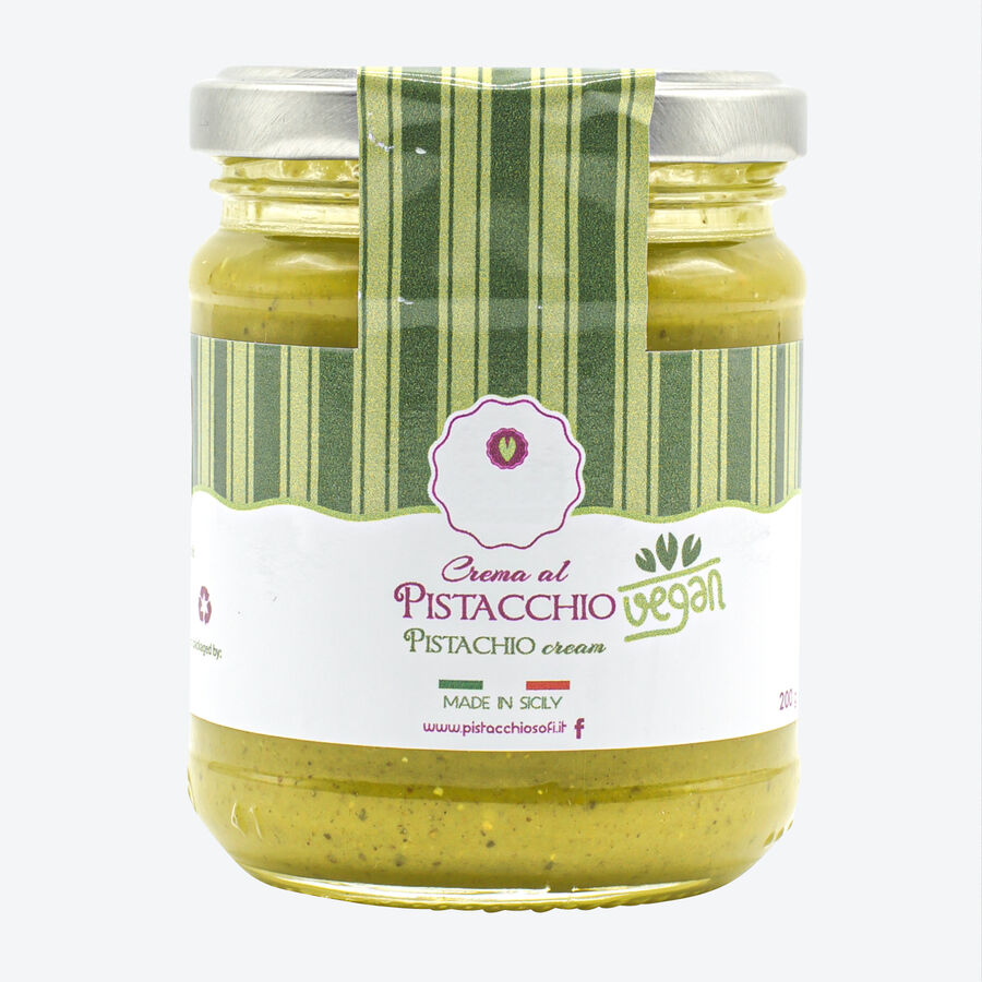 La Sicile est connue dans le monde entier pour ses savoureuses pistaches. Dans la région de Catane, « l'or vert » de l'île mûrit dans les meilleures conditions climatiques. Pour notre crème raffinée, les pistaches sont d'abord doucement grillées. Après un temps de repos de 24 heures, elles sont moulues à froid et avec précaution. Le traitement à froid permet de conserver les huiles essentielles et de développer le merveilleux arôme de la crème. Son huile naturelle de noix la rend extrêmement onctueuse. Délicieuse à tartiner, elle affinera aussi desserts, glaces et pâtisseries.