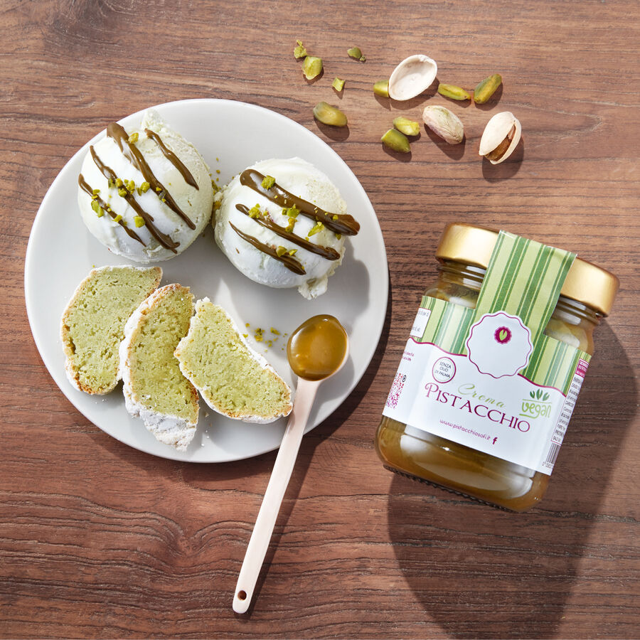 • Pâte à tartiner crémeuse à base de pistaches siciliennes