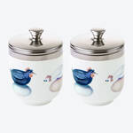 Coquetiers en porcelaine dure - Lot de 2, Ø 6,5 cm, 150 ml, décor poule, pour 3 oufs, avec couvercle inox, oufs mollets en 6-9 min, recettes incluses