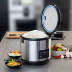 Six programmes préréglés pour préparer du riz blanc ou complet, un risotto ou de la bouillie de céréales. Inutile de mélanger ou de rajouter du liquide. Pour réussir également les ingrédients de la cuisine saine tels que le quinoa et le congee. Aucune préparation ne sera collante, trop sèche, trop humide ou brûlée. La fonction de maintien au chaud pendant 12 heures démarre après le signal de fin de cuisson. Vous pouvez cuire du riz qui ne colle pas, du riz à sushi, des soupes et des aliments pour bébé, mais aussi des légumes, du poisson et de la viande à la vapeur. Grâce à la méthode de cuisson saine et sans matières grasses, les minéraux, vitamines et arômes naturels sont préservés.