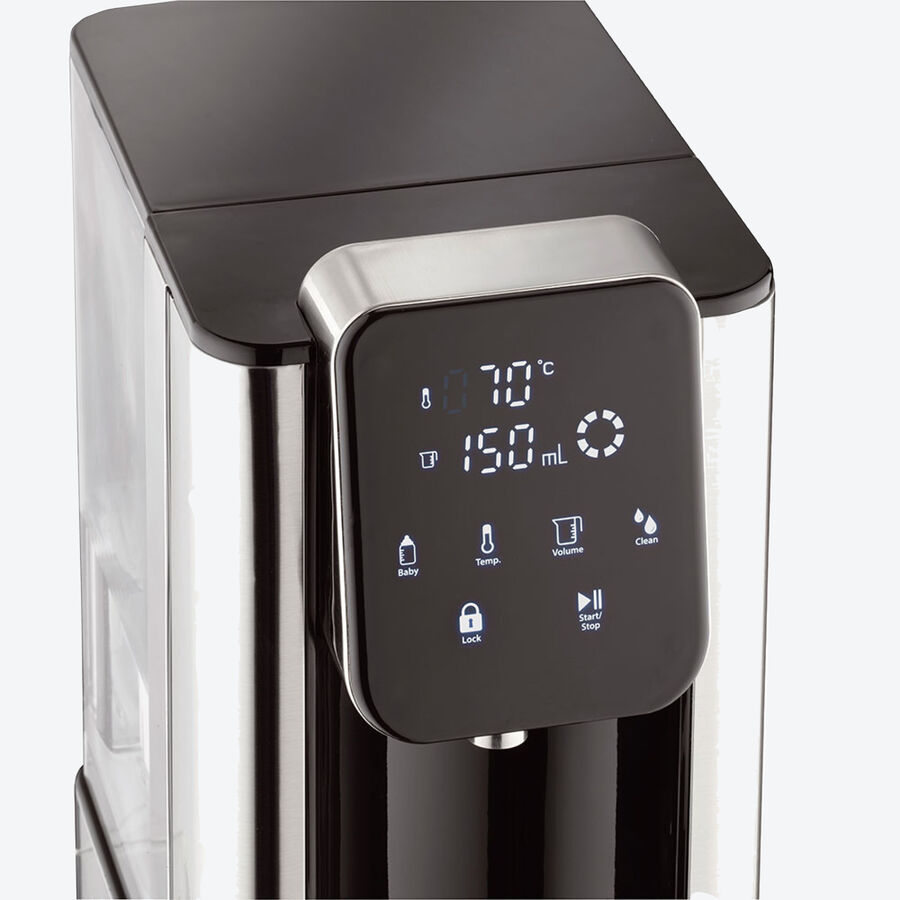 Selon le principe du chauffe-eau continu, une quantité d'eau allant jusqu'à 2,7 litres, est prête à la température souhaitée en seulement 5 secondes. Vous choisissez la température sur 7 niveaux entre 40 et 100 °C suivant la préparation souhaitée : thé, café, repas pour bébé ou autres. La touche de sélection directe de température de 40 °C est particulièrement pratique pour la préparation parfaite des repas pour bébés. Vous pouvez également sélectionner la quantité d'eau souhaitée sur l'écran tactile en fonction de vos besoins, parmi 8 paramètres prédéfinis. Que ce soit pour une tasse de 100 ml ou un gros mug de thé de 250 ml, tout comme pour l'eau de cuisson des pâtes, du riz ou de pochage, tout est chauffé plus rapidement et en économisant plus d'énergie que sur toute cuisinière grâce à la technologie High-speed. Vous pouvez également sélectionner l'écoulement d'eau en continu. De cette façon, vous économisez jusqu'à 50 % en temps et en énergie. Le filtre à charbon actif (pour env. 150 litres) assure une qualité d'eau parfaite.