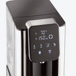 Corps Cool-Touch en matière plastique solide avec application en acier inoxydable, 15 x 27 x 32 cm (l/p/h). Réservoir d'eau amovible en polypropylène de 2,7 l, poids 2,4 kg, pieds antidérapants, indication du niveau d'eau, pour récipients jusqu'à 15 cm de hauteur, écran tactile à affichage LCD, 230V/2.600W, 7 niveaux de température, 8 préréglages de volume, cordon de raccordement 1 m, sécurité contrôlée.