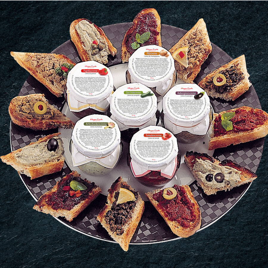 aubergine, poivre noir, ail, menthe, huile d'olive vierge extra, Correcteur d'acidité: acide citrique.