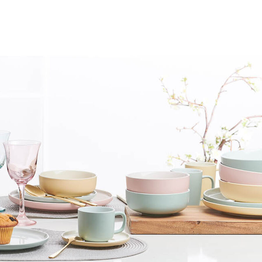 Par leur simplicité, les formes rectilignes rappellent le style scandinave, qui rayonne la convivialité typique du « Hygge ». L'effet de la vaisselle au design clair, avec sa texture fine et sa palette de couleurs fraîches, est encore renforcé par le noble contraste entre l'émail mat et brillant de chaque pièce. Couvrez votre table de printemps de couleurs harmonieuses et impressionnez vos invités avec le look rétro romantique.
