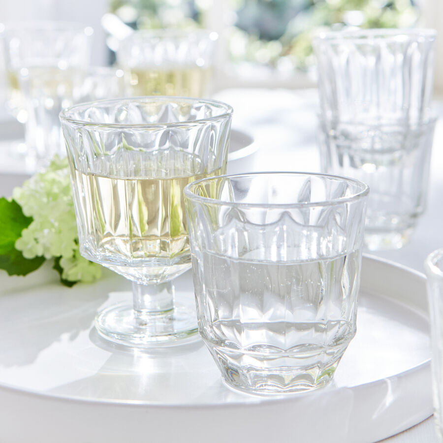 Des verres à eau français classiques fascinants par leurs reflets scintillants