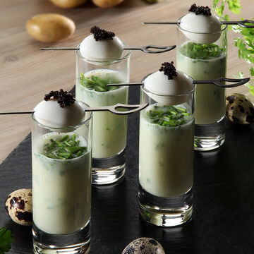 Vichyssoise avec brochettes d'oeufs de caille